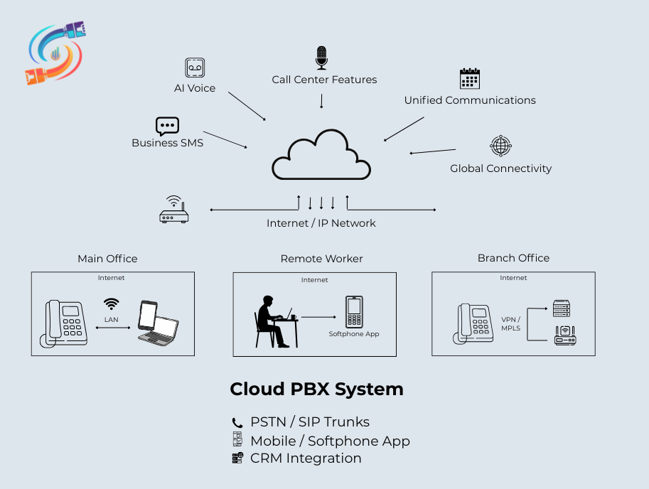 Full-Featured PBX system that resides in the cloud. A single domain can support multiple sites and remote users. All users have a traditional extension number. Call your co-worker in New York while sitting at your desk in LA as if they were sitting at the end of the hallway by dialing their extension number and not a traditional 10-digit phone number. Comes with our ConnectUC app and all its features such as Meetings and E-Fax.